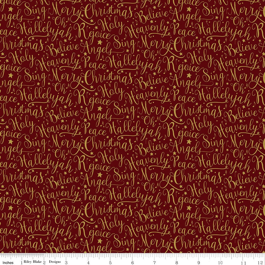 35" End of Bolt - Oh Holy Night Words Mulberry SPARKLE- Riley Blake - Christmas Nativity Text Red Gold- Quilting Cotton Fabric-
