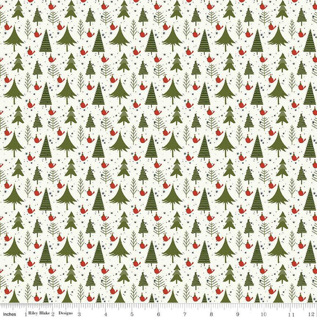 9" End of Bolt - Christmas is In Town Trees C14744 Cream - Riley Blake Designs - Pine Trees Birds Speckled - Quilting Cotton Fabric