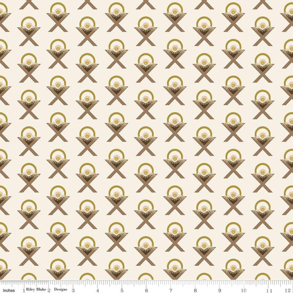 CLEARANCE Oh Holy Night Manger Linen SPARKLE - Riley Blake Designs - Christmas Nativity Mangers Beige with Gold - Quilting Cotton Fabric
