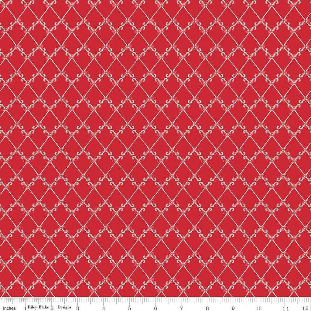 SALE Mistletoe & Holly Candy Canes C16406 Red - Riley Blake Designs - Lattice Lines Sugar Sweets Treat - Quilting Cotton Fabric