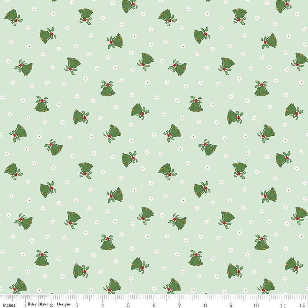 Mistletoe & Holly Mistle Scattered Bells C16404 Hint of Mint - Riley Blake Designs - Star Blossoms Holly - Quilting Cotton Fabric