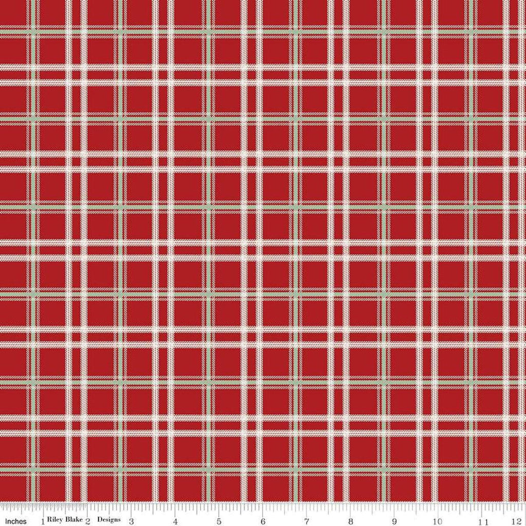 Mistletoe & Holly Plaid C16407 Barn Red - Riley Blake Designs - Lines Multicolored Plaid - Quilting Cotton Fabric