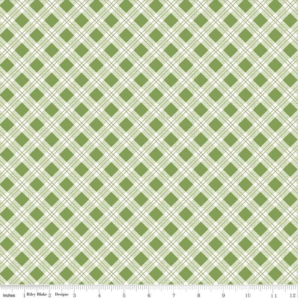 Bee Plaids Scarecrow C12020 Clover by Riley Blake Designs - Diagonal Plaid Green - Lori Holt - Quilting Cotton Fabric