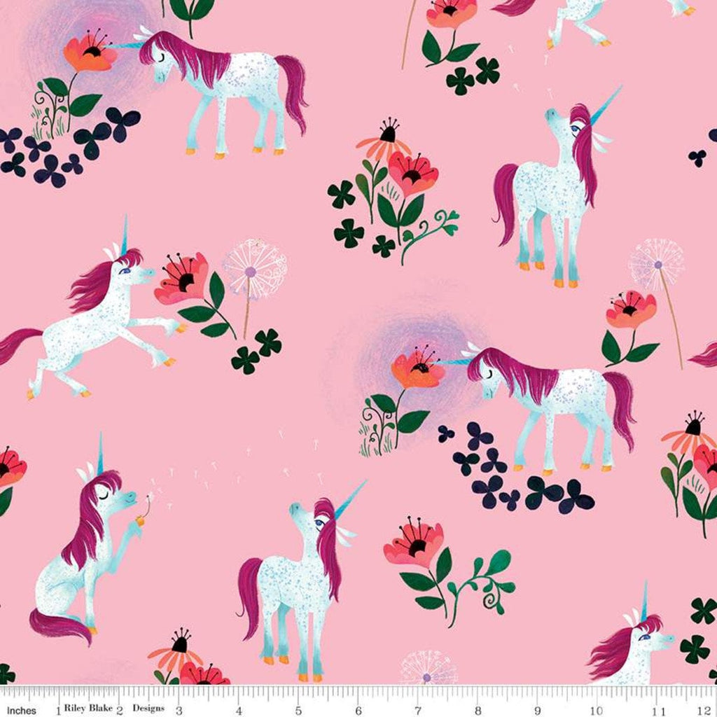 SALE Uni the Unicorn Toss C9981 Light Pink - Riley Blake Designs - Fantasy Juvenile Amy Krouse Rosenthal Flowers - Quilting Cotton Fabric