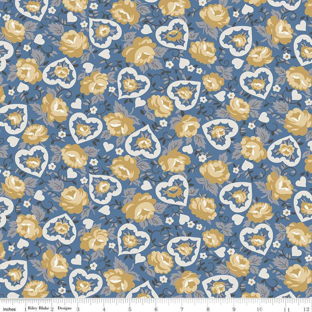 CLEARANCE Delightful Hearts C10252 Blue - Riley Blake Designs - Floral Flowers - Quilting Cotton Fabric