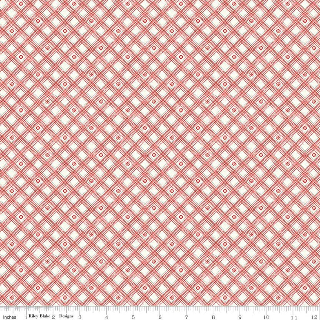 CLEARANCE From the Heart Plaid C10056 Cream - Riley Blake - Valentine's Diagonal Lines Hearts - Quilting Cotton Fabric