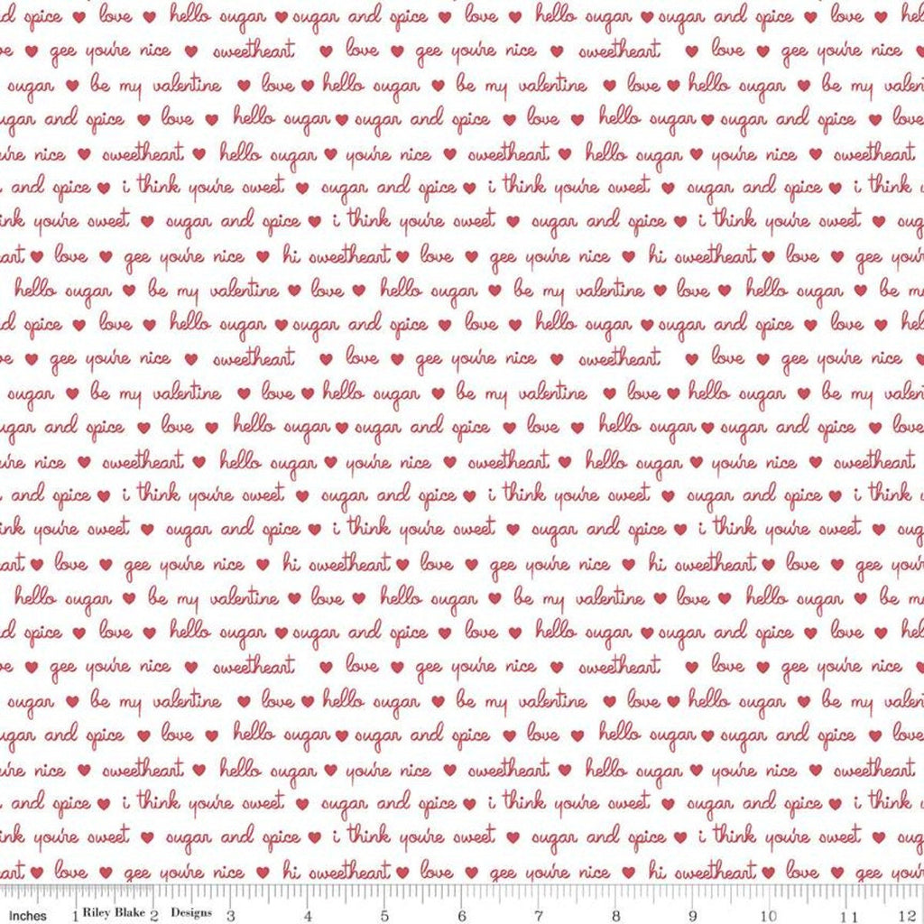 SALE Sugar and Spice Endearments C11413 White - Riley Blake Designs - Valentine's Red Hearts Text Words on White - Quilting Cotton Fabric