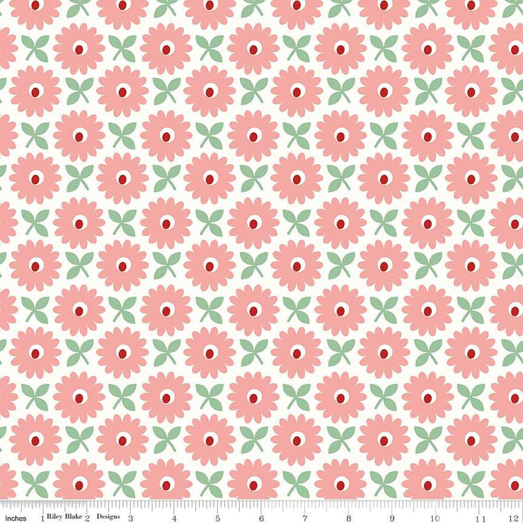 3 yard cut- SALE Home Town WIDE BACK WB13601 Heirloom Coral - Riley Blake - 107/108" Wide Flowers - Lori Holt - Quilting Cotton Fabric