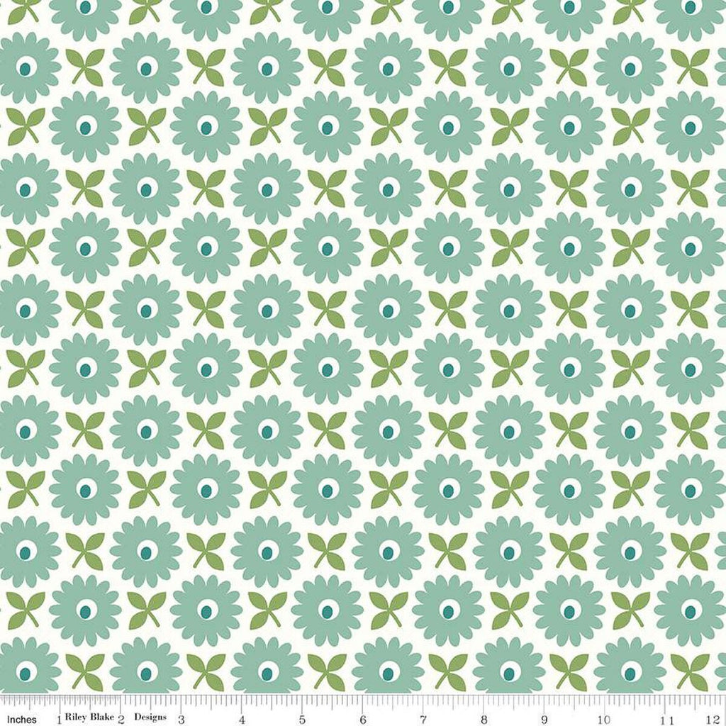 3 yard cut- SALE Home Town WIDE BACK WB13601 Heirloom Sea Glass - Riley Blake - 107/108" Wide Floral - Lori Holt - Quilting Cotton Fabric