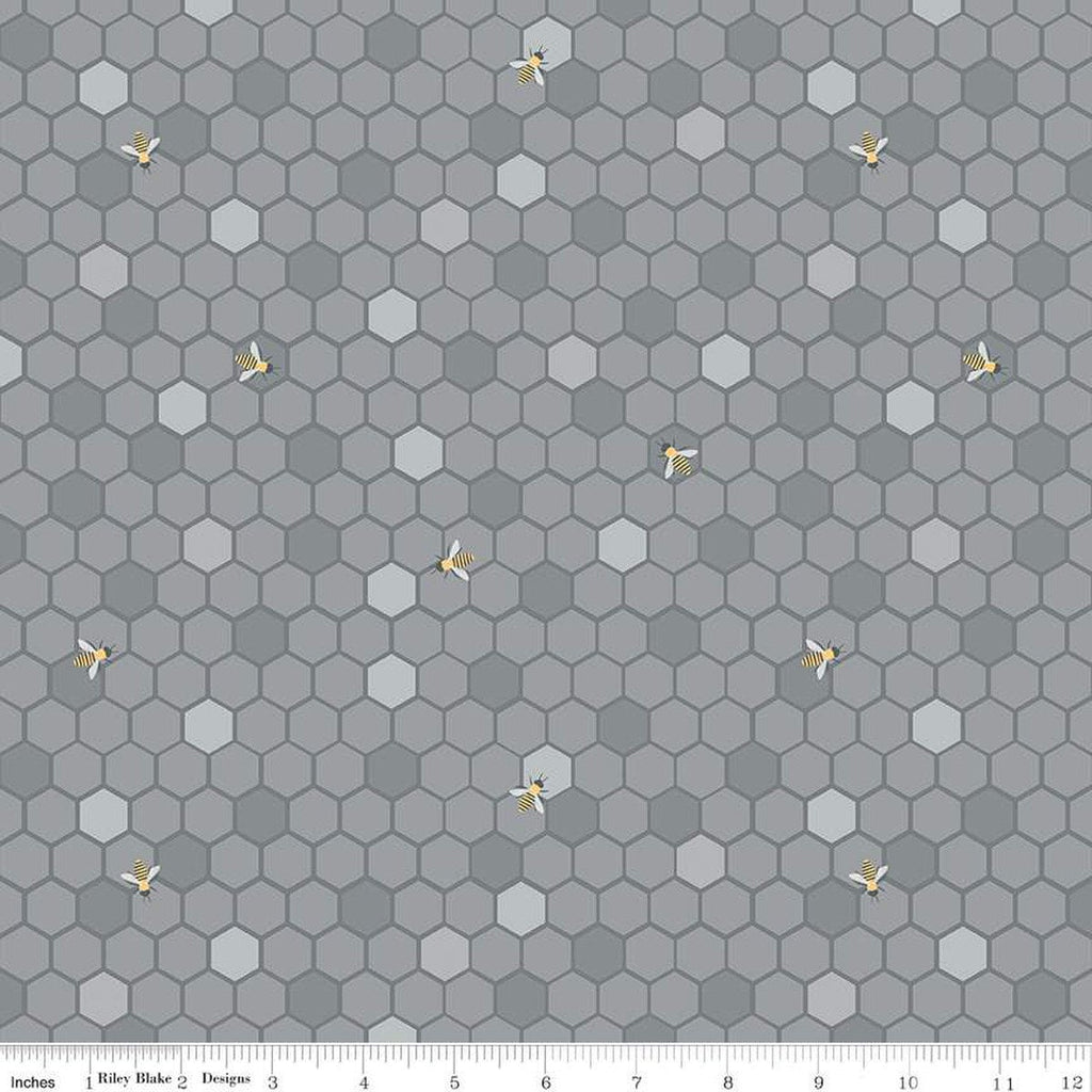 1 Yard End of Bolt - CLEARANCE Sunshine and Sweet Tea Honeycomb C14321 Gray by Riley Blake Designs - Geometric Bees - Quilting Cotton Fabric