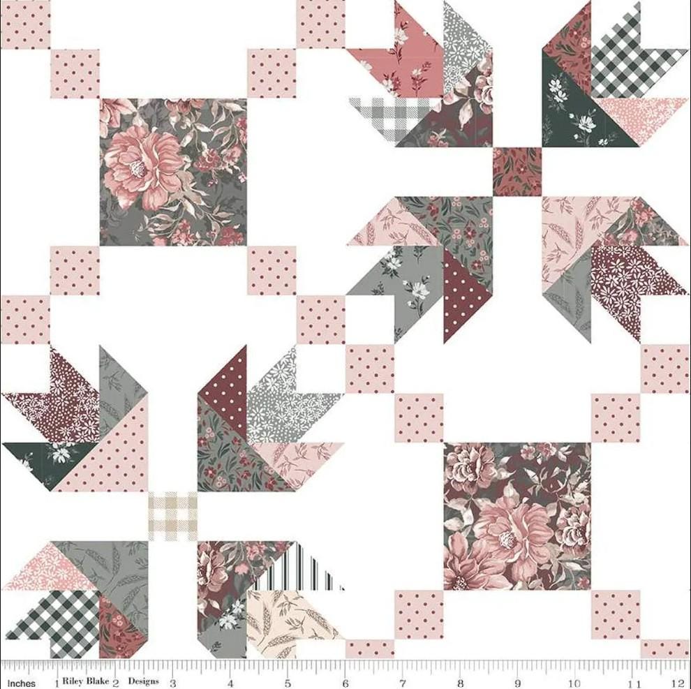 10" End of Bolt - A Walk on the Prairie Chain Cheater C15239 White - Riley Blake Designs - Tulip Block - Quilting Cotton Fabric