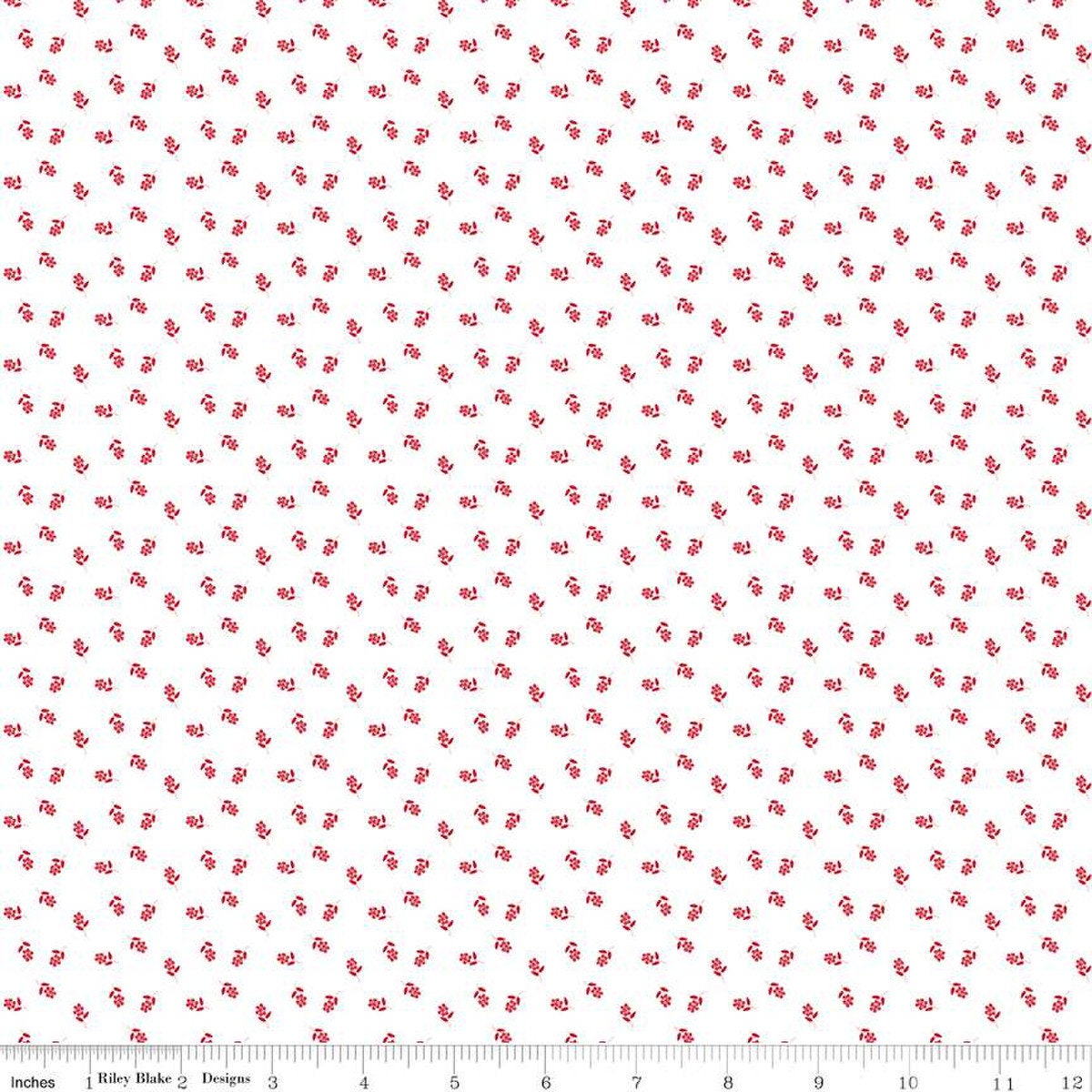 13" End of Bolt - Cheerfully Red Flowers C13316 White - Riley Blake Designs - Flower Floral - Quilting Cotton Fabric