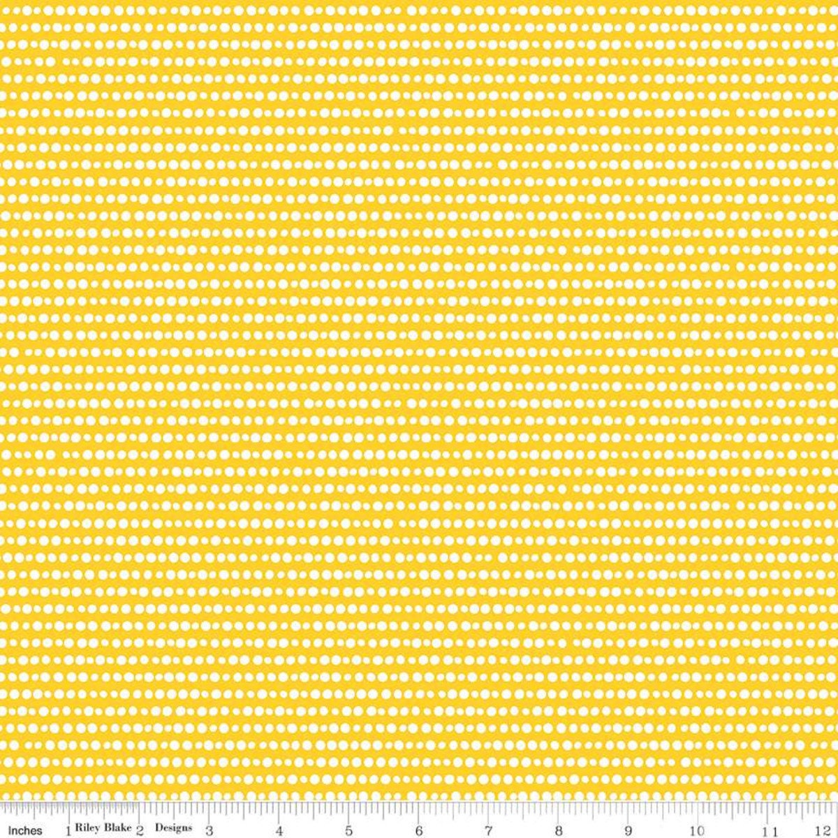 15" End of Bolt - DEAL Grl Pwr Dots C10657 Yellow - Riley Blake - Girl Power Geometric Rows Irregular White Dots Dotted - Quilting Cotton