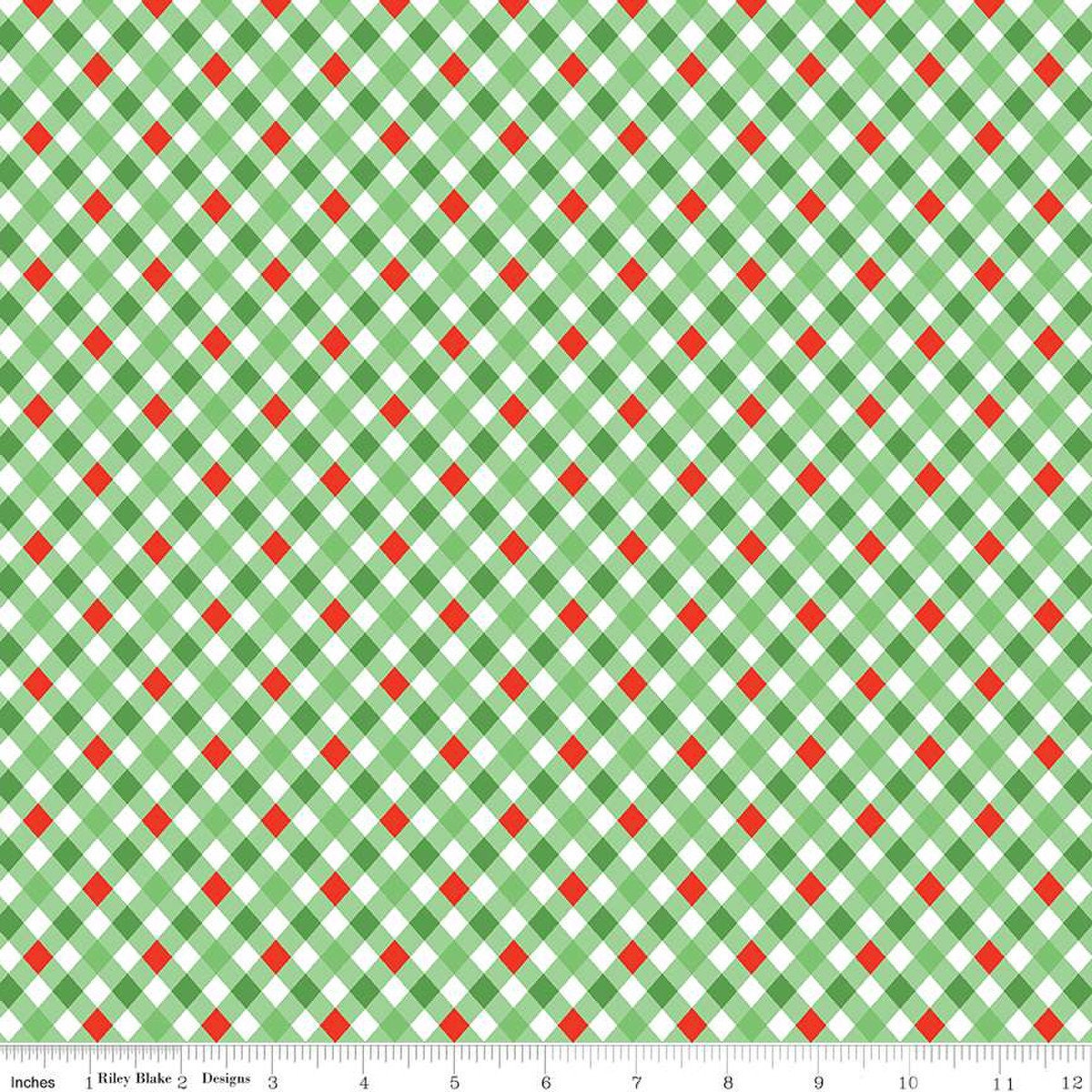 15" End of Bolt - Jingle Bells Plaid C14836 Green by Riley Blake Designs - Christmas Diagonal - Quilting Cotton Fabric