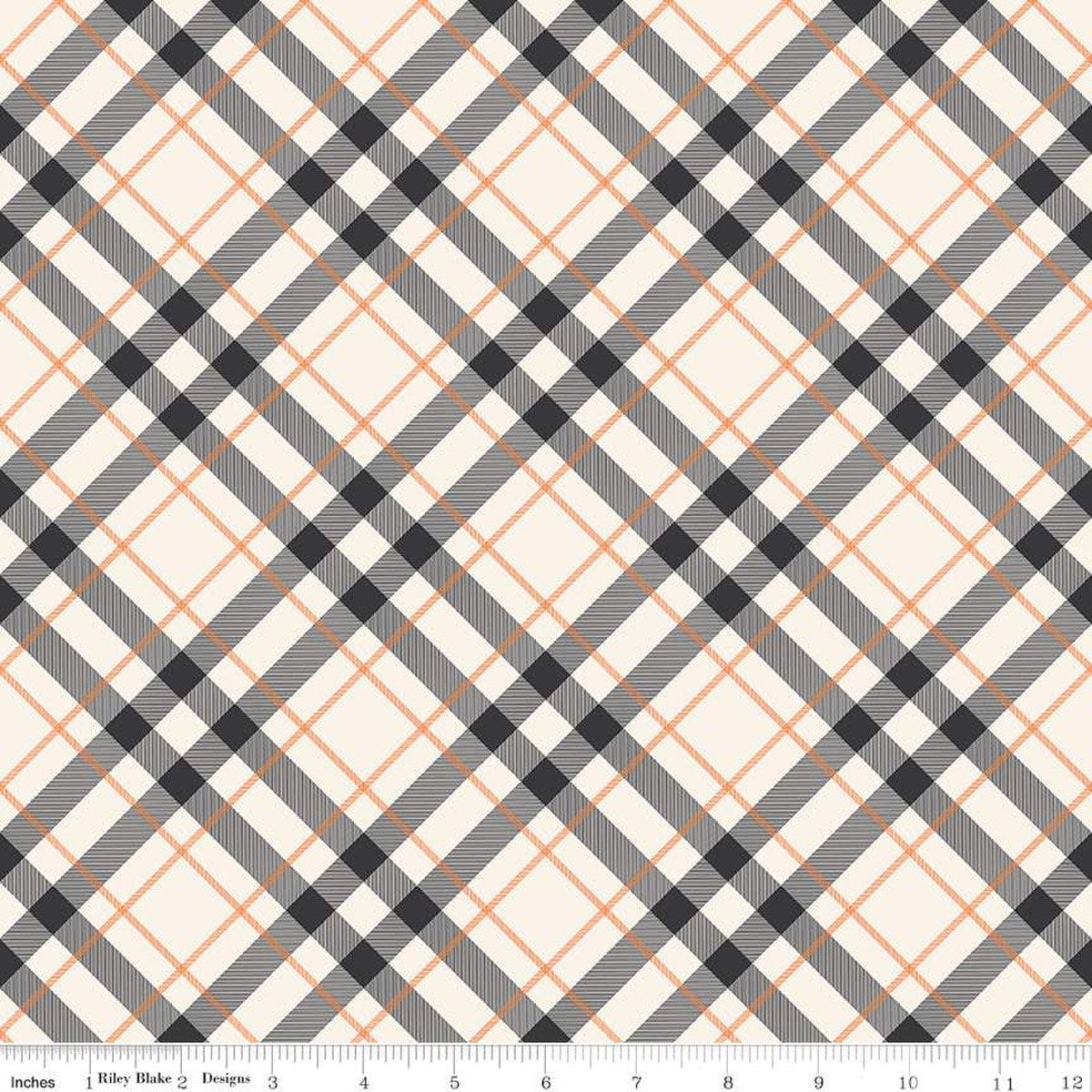 17" End of Bolt Piece - Hey Bootiful Plaid C13133 Off White - Riley Blake Designs - Halloween Diagonal Plaid - Quilting Cotton Fabric