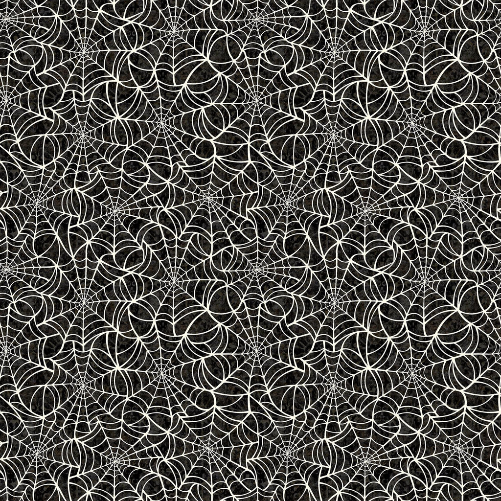 Creepsville Spiderweb Charcoal WIDE BACK by QT Fabrics 1899 30206 K