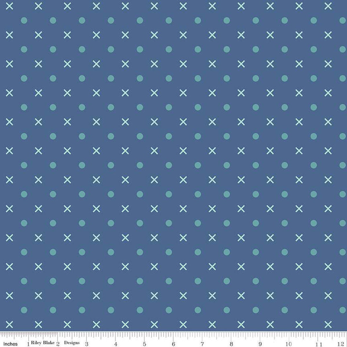 2 Yard 21" End of Bolt - Bee Dots WIDEBACK WB14183 Denim - Riley Blake Designs - 108" - Xs and Dots - Quilting Cotton Fabric