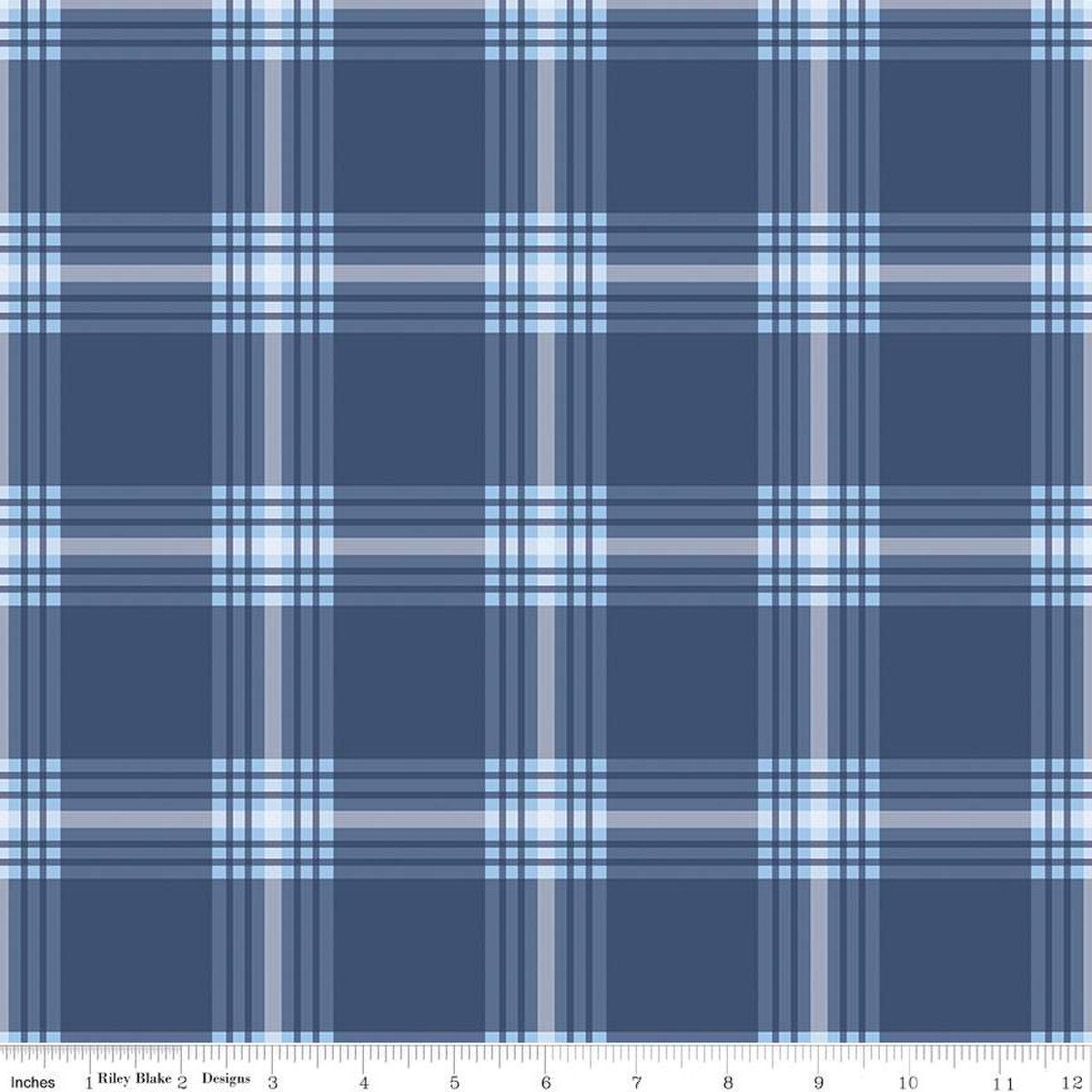 Snow Leopard Plaid Denim FLANNEL by Riley Blake Designs F13191-DENIM