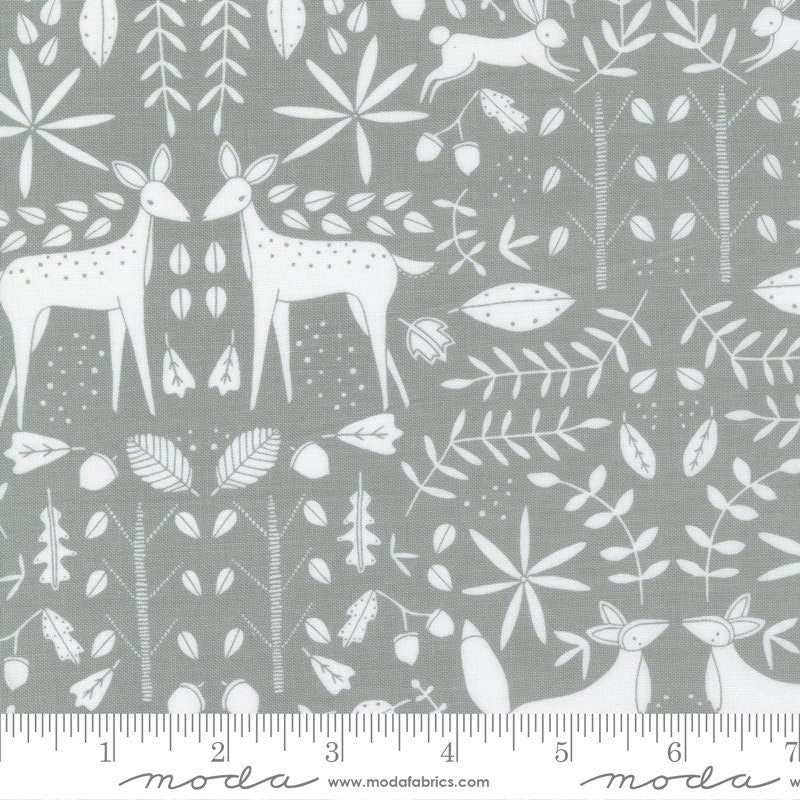25" End of Bolt - SALE Nocturnal Forest Otomi 48334 Raincloud - Moda Fabrics - Animal Owl Rabbit Fox Deer Off White on Gray- Quilting Cotton