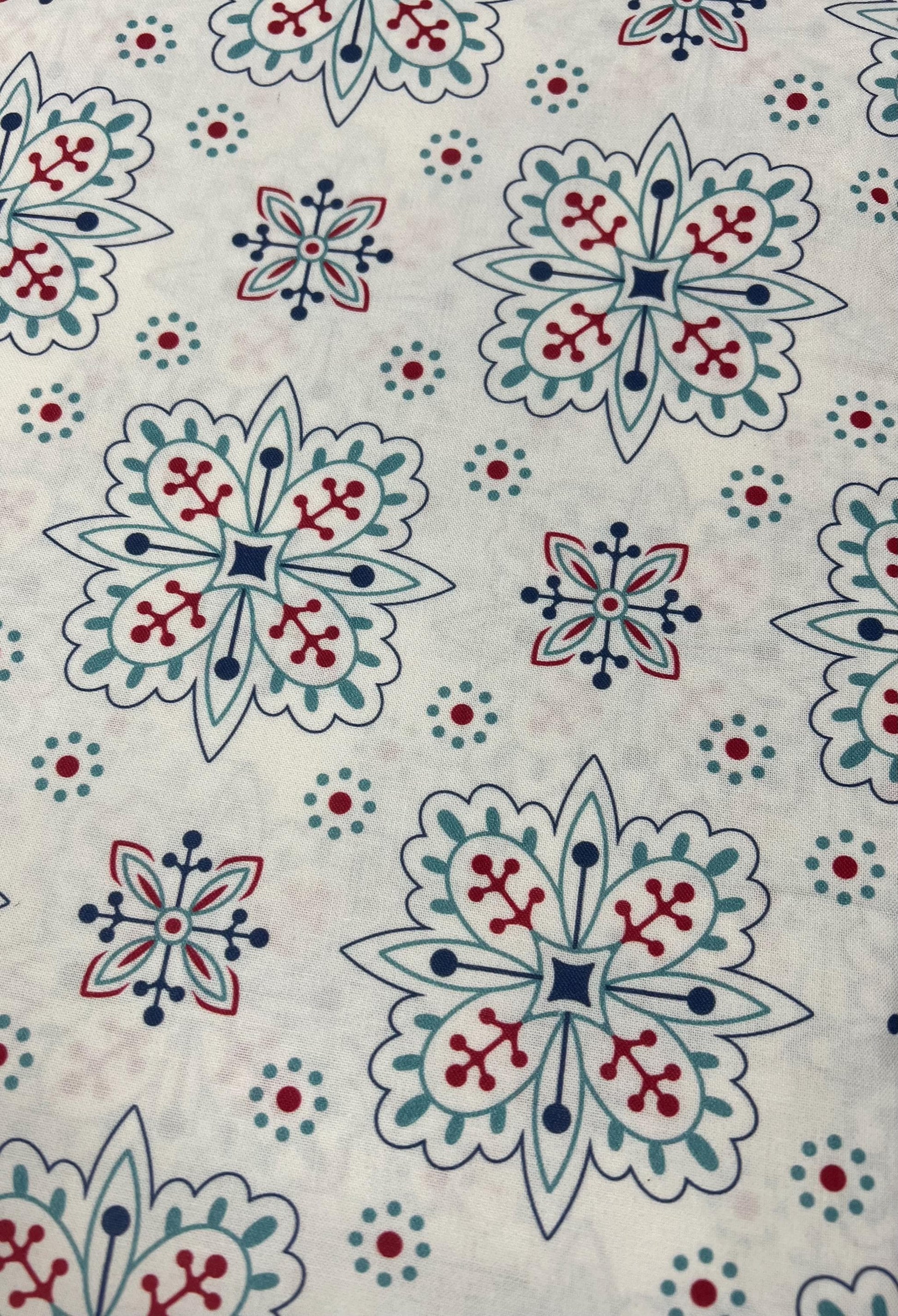 Please note that the fabric is cut straight off the bolt, meaning that it may not follow the print on the fabric.