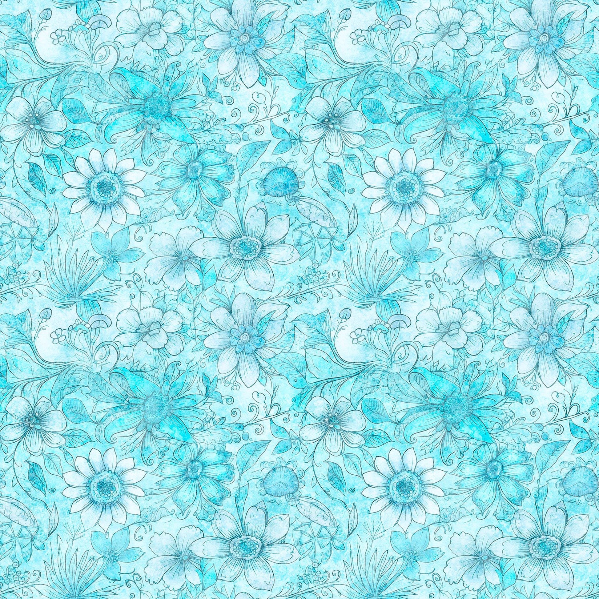 Enchanted Flower Tonal Aqua WIDE BACK by QT Fabrics 1999 30763 Q