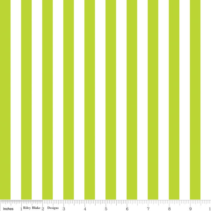 Lime and White 1/2 Half Inch Stripe by Riley Blake Designs - C530-32