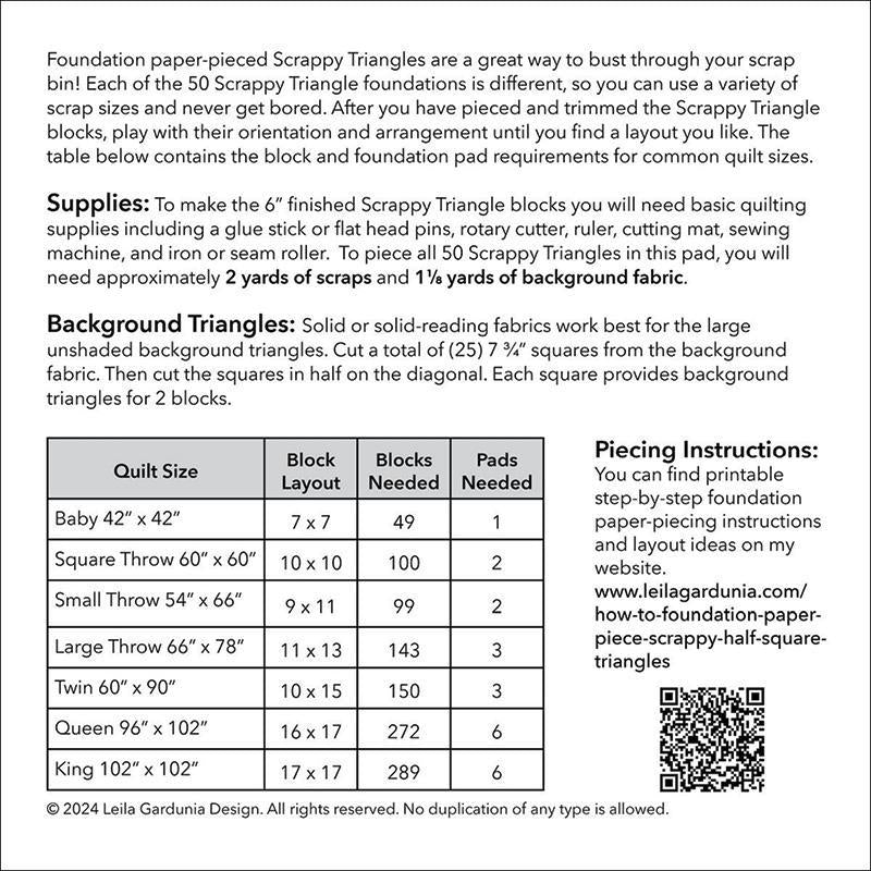 6" Scrappy Triangles Quilt Block Foundation Paper by Leila Gardunia Design LGD-108