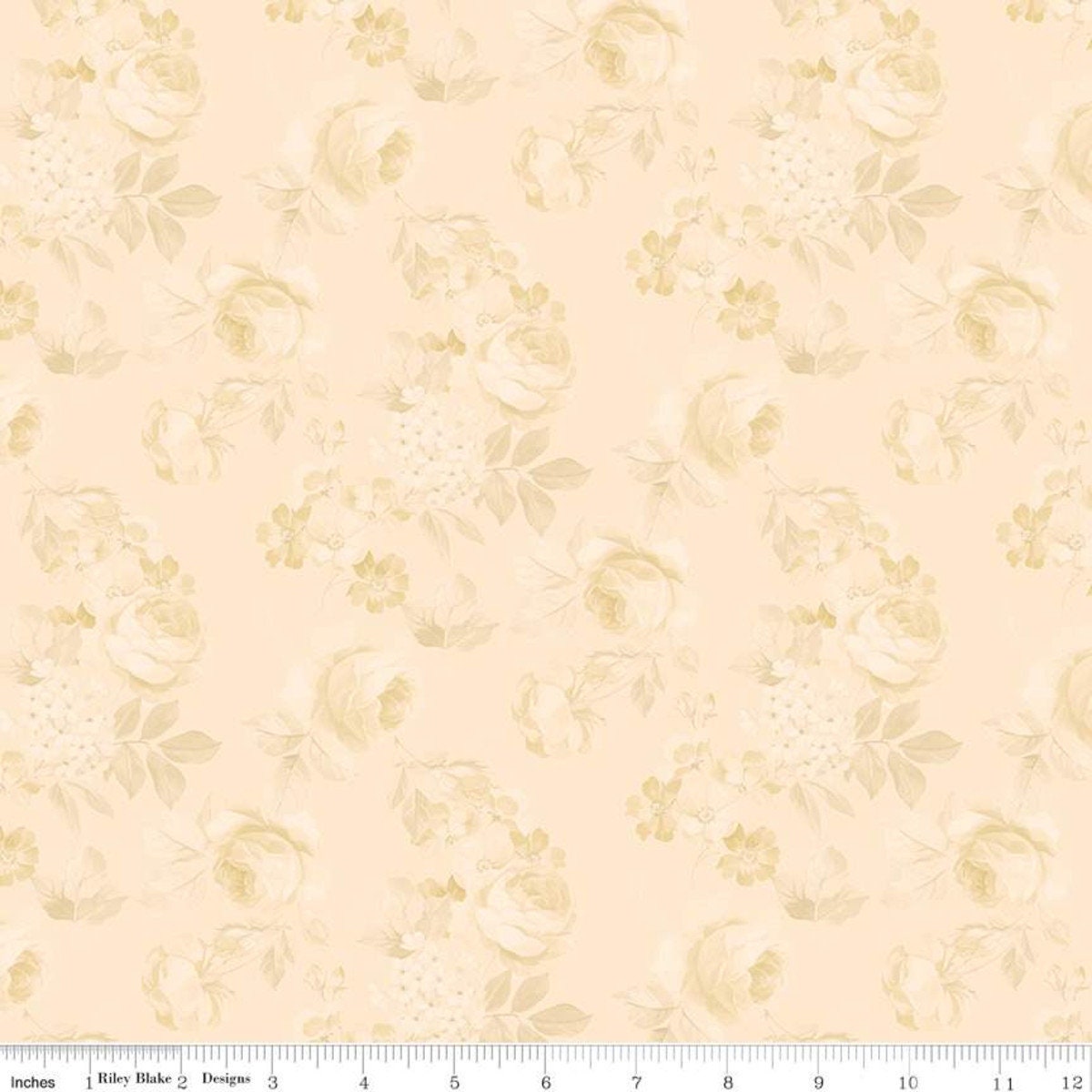 9" End of Bolt-CLEARANCE Rose and Violet's Garden Faded Roses C10412 Beehive-Riley Blake-Floral Tone-on-Tone Cream -Quilting Cotton Fabric