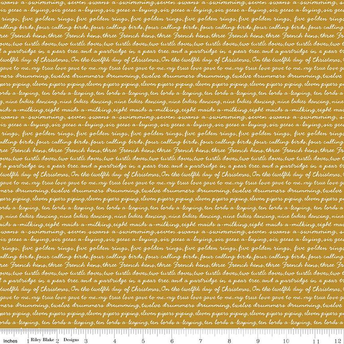 A Pear-fect Christmas Calling Words C14974 Gold - Riley Blake Designs - Text The Twelve Days of Christmas - Quilting Cotton Fabric