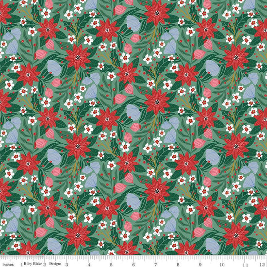 A Pear-fect Christmas Flowers Dancing C14971 Mint - Riley Blake Designs - Floral Flower - Quilting Cotton Fabric