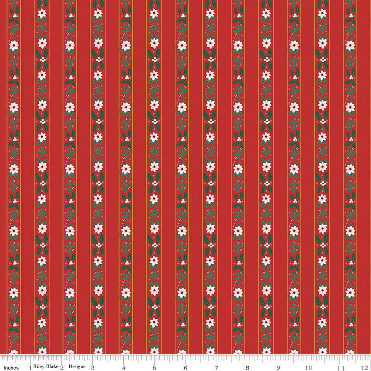 A Pear-fect Christmas French Stripe C14973 Red - Riley Blake Designs - Striped Stripes Flowers Leaves - Quilting Cotton Fabric