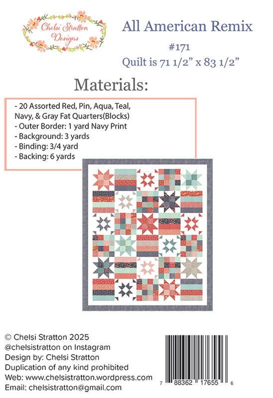 All American Remix G Quilt PATTERN CSD-171 by Chelsi Stratton Designs- Moda Fabrics - INSTRUCTIONS Only - Fat Quarter Friendly