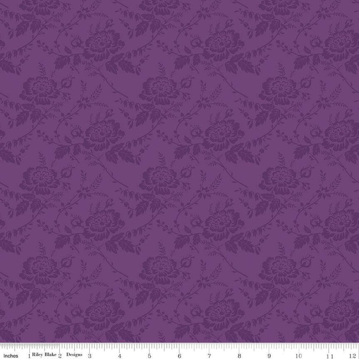 Anne of Green Gables Damask C13855 Eggplant - Riley Blake Designs - Floral Flowers Leaves - Quilting Cotton Fabric - Licensed Product