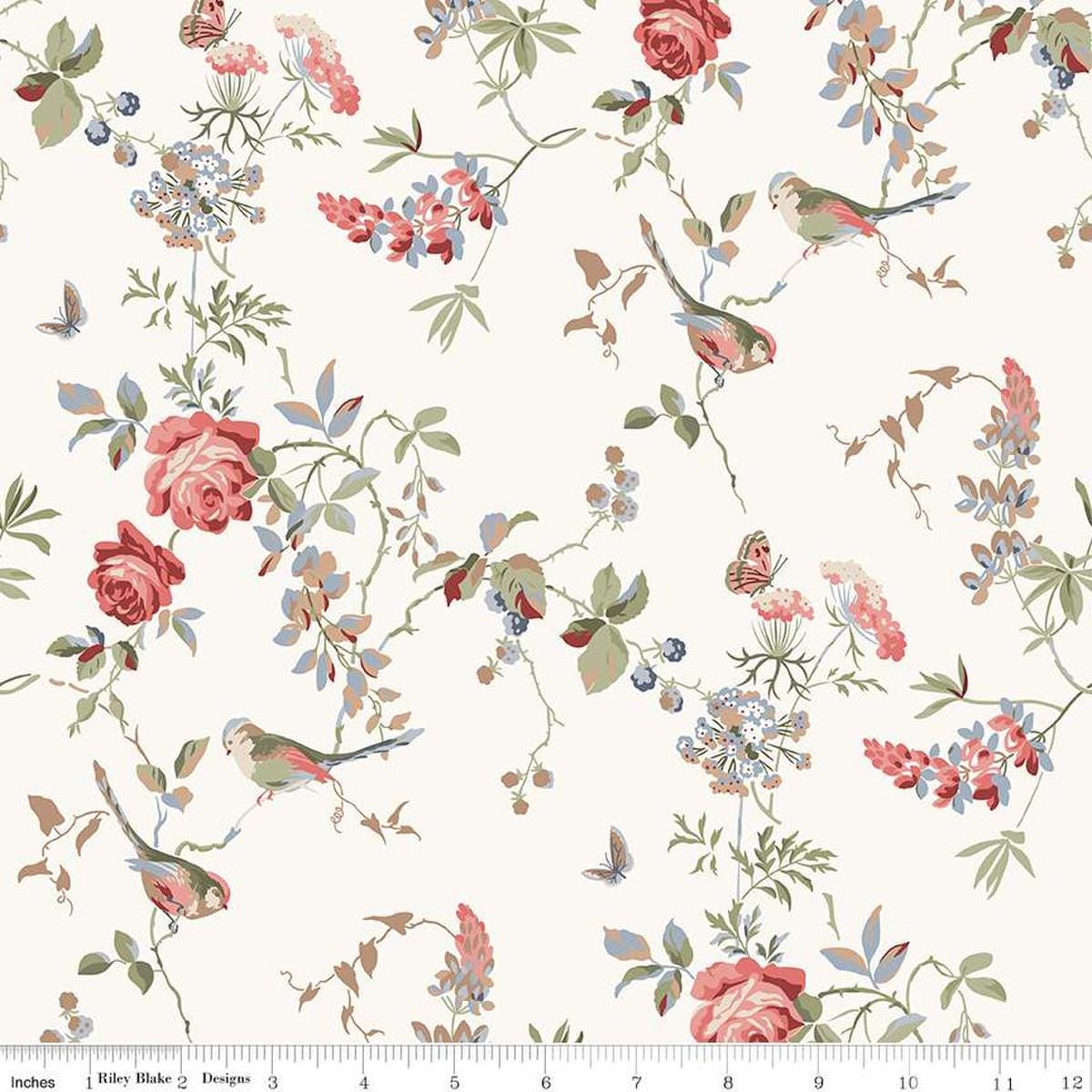DEAL Anne of Green Gables Floral C16121 Cream - Riley Blake Designs - Flowers Leaves Birds - Quilting Cotton Fabric - Licensed Product