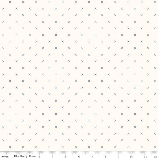 Bee Backgrounds Cross Stitch C6381 Blue - Riley Blake Designs - Xs Off White - Lori Holt - Quilting Cotton Fabric