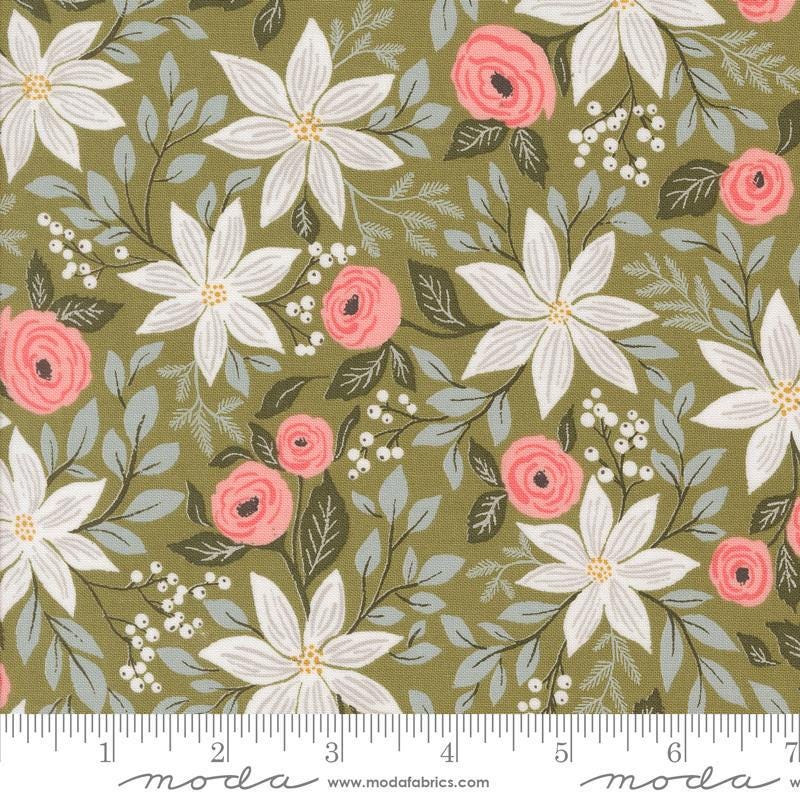 Berry & Pine Florals 5240 Sage - Moda Fabrics - Poinsettia Roses Flowers Blossoms Leaves leaf - Quilting Cotton Fabric