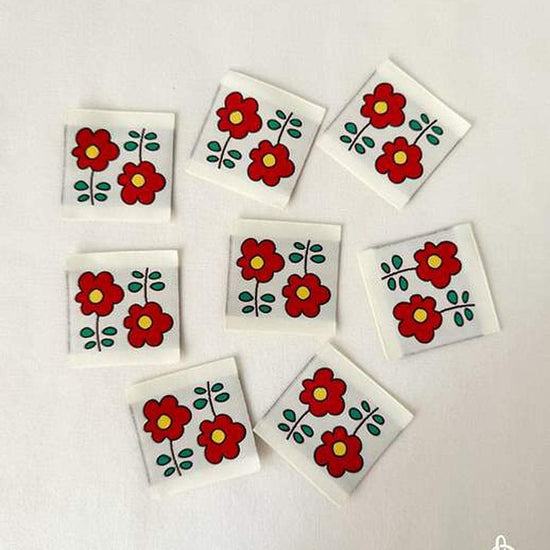 DEAL Camellia Woven Labels P178-SIWL13 - Riley Blake Designs - Minki Kim - Durable Thread - Machine Washable - Polyester - Set of 8 Labels