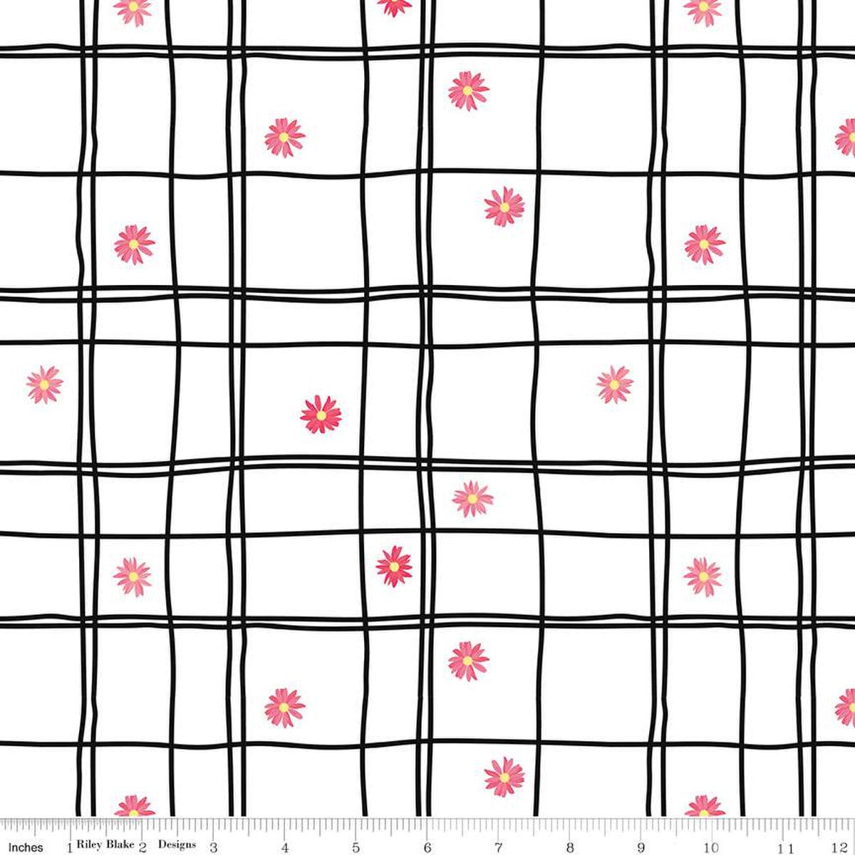 DEAL CANVAS Flour & Flower CV14018 Flower Grid White CV14018 - Riley Blake Designs - Irregular Grid Flowers - Lightweight Cotton Canvas