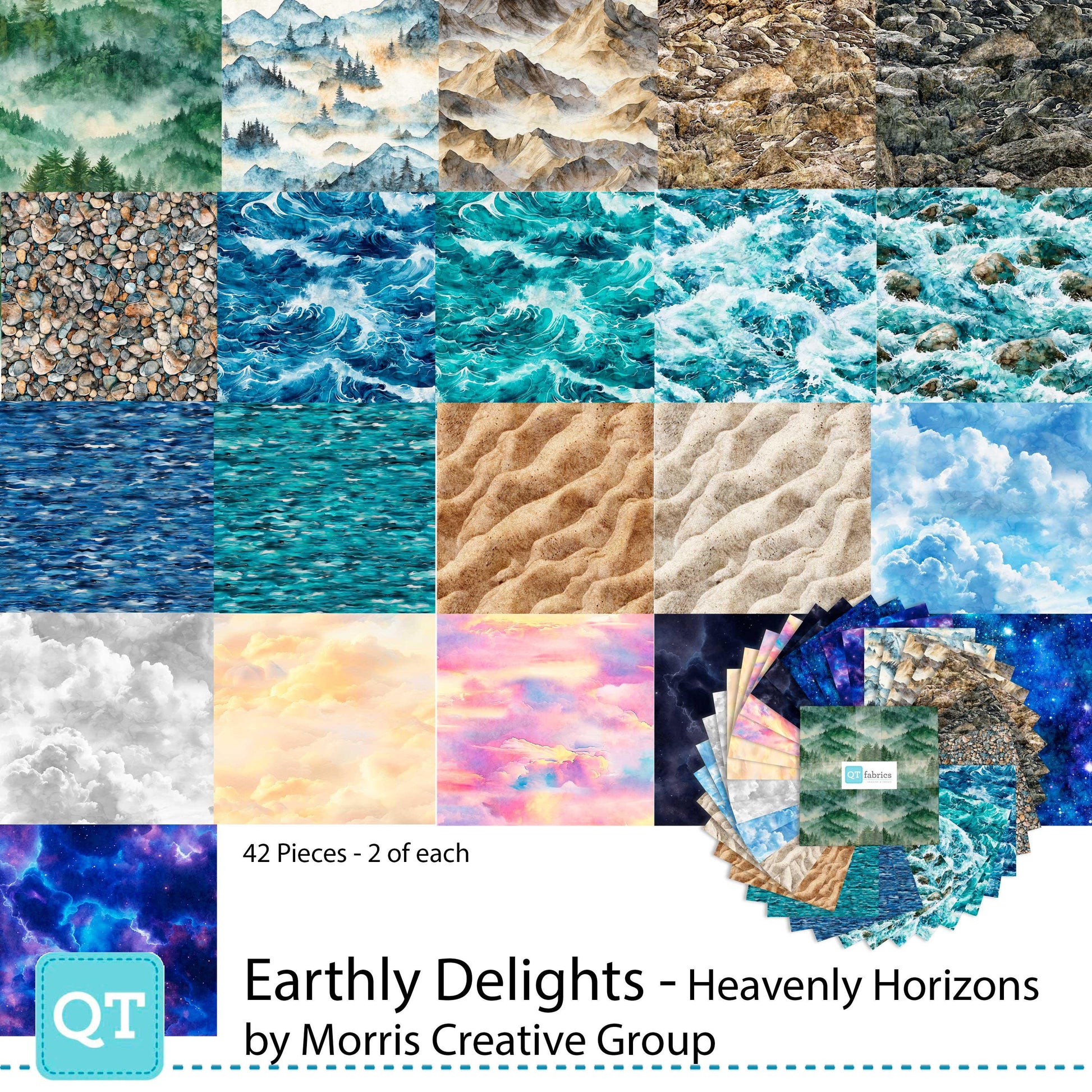 Earthly Delights Heavenly Horizons Layer Cake 10" Stacker Bundle - QT Fabrics- 42-Piece Precut - Ocean Sky - Quilting Cotton Fabric
