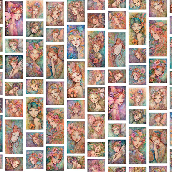 DEAL Enchanted Fairy Portrait Patches 30760 White Z - - QT Fabrics - Fairies Faeries Fae Magic - Quilting Cotton Fabric