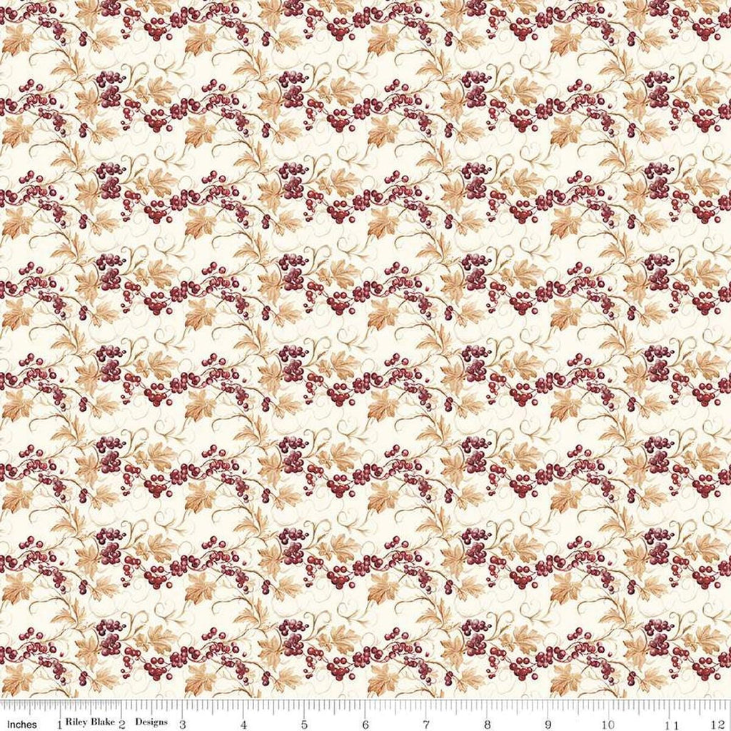 SALE Evening on the Prairie Prairie Berries C14502 Cream - Riley Blake Designs - Leaf Leaves Vines - Quilting Cotton Fabric
