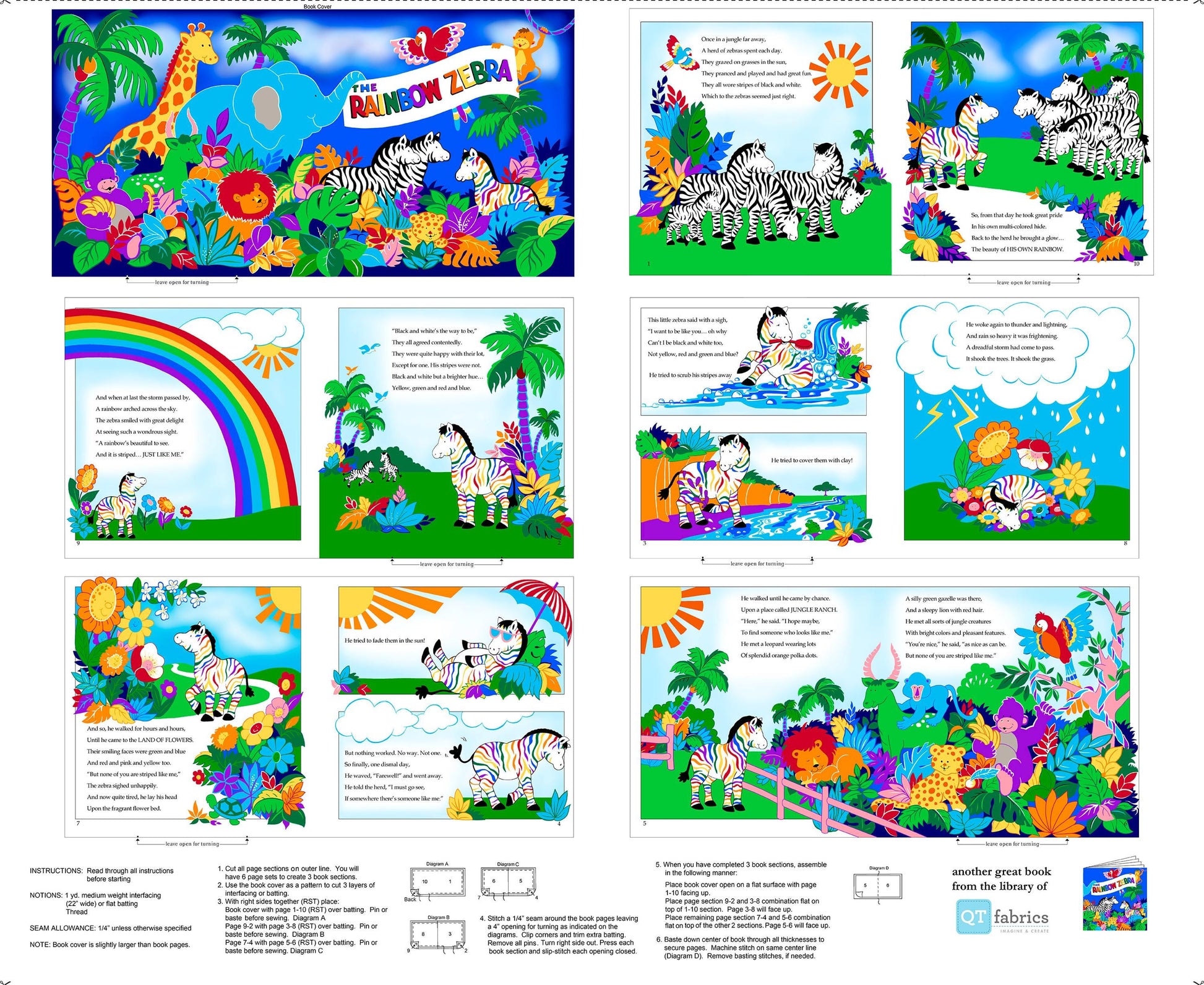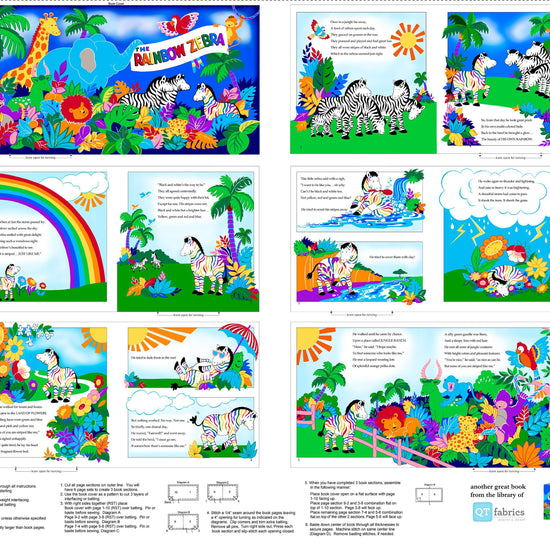 Fabric Books Rainbow Zebra Book Panel 28890 Multi X - - QT Fabrics - Baby Book Animals - Quilting Cotton Fabric
