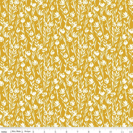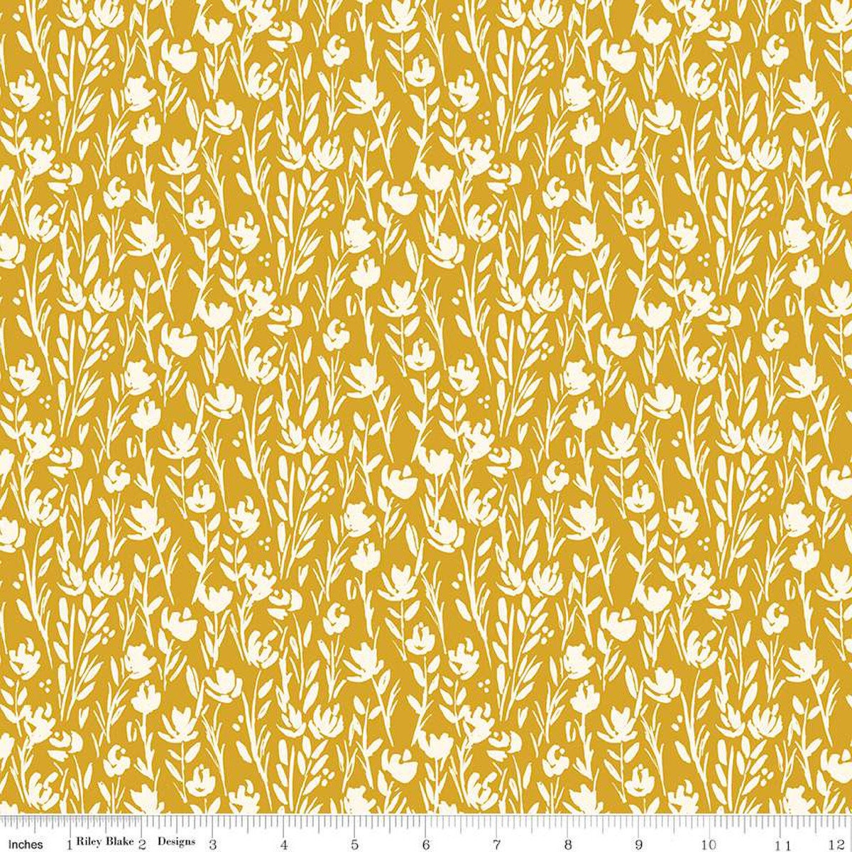 Fat Quarter End of Bolt - DEAL Eden Tonal C12924 Mustard by Riley Blake Designs - Floral Cream Flowers - Quilting Cotton Fabric