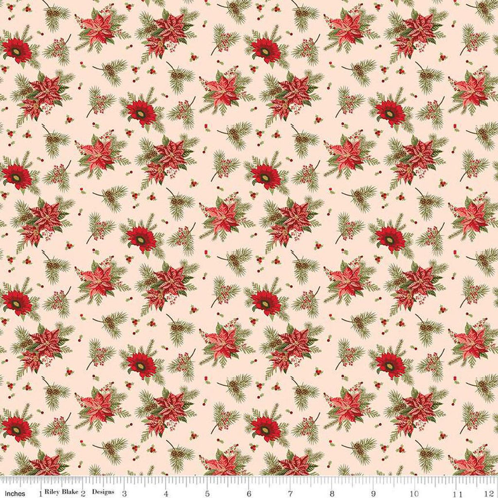 Glisten Floral C16223 Blush - Riley Blake Designs - Sprigs Flowers Floral Pine Needles Berry Berries - Quilting Cotton Fabric
