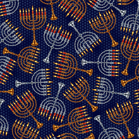 Hanukkah Festival Menorahs Navy by QT Fabrics 2600 30273 N