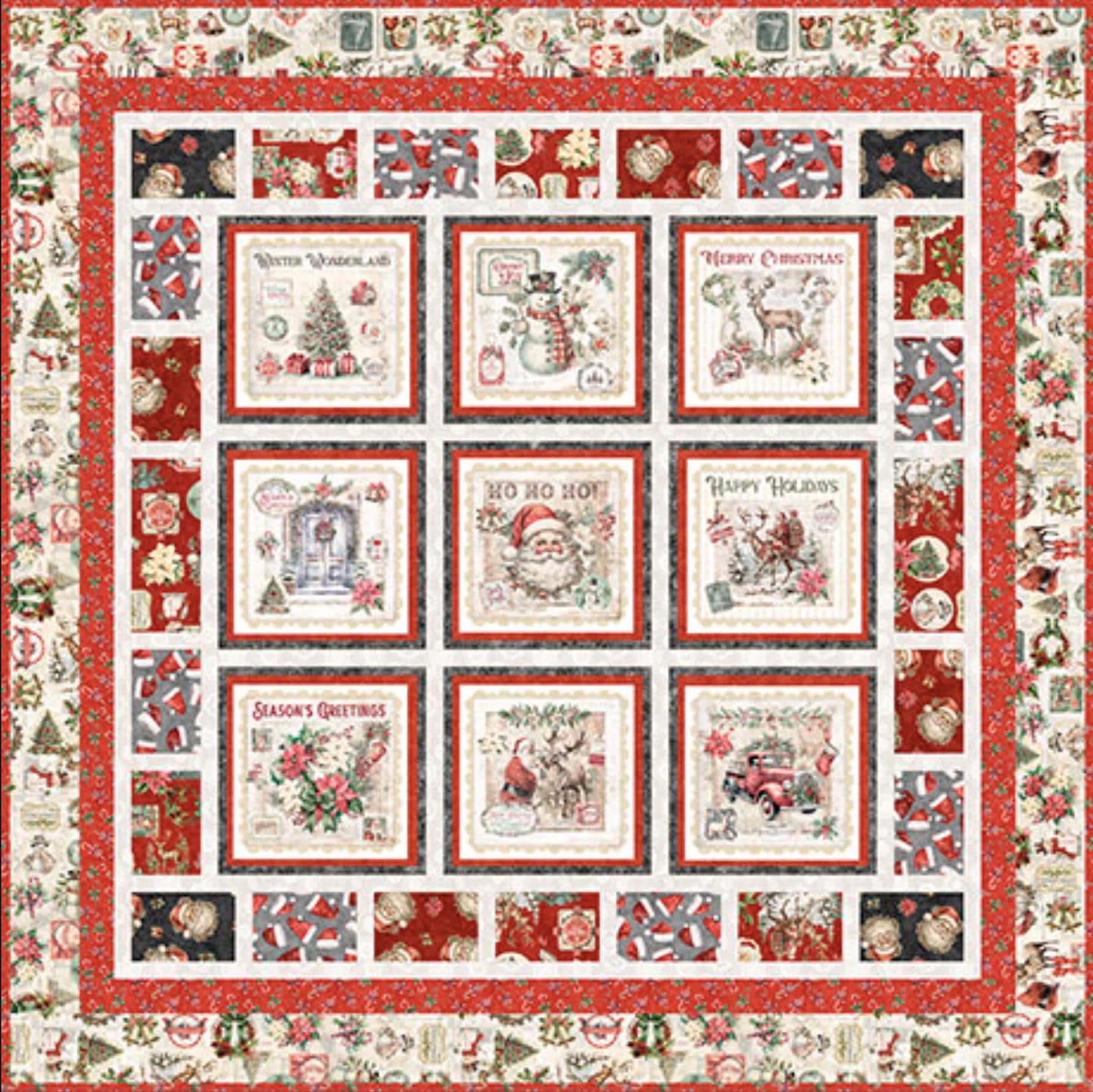 Holly Jolly Quilt Kit - QT Fabrics - Pattern Fabric - Chrismas Santa Holiday - Quilting Cotton Fabric