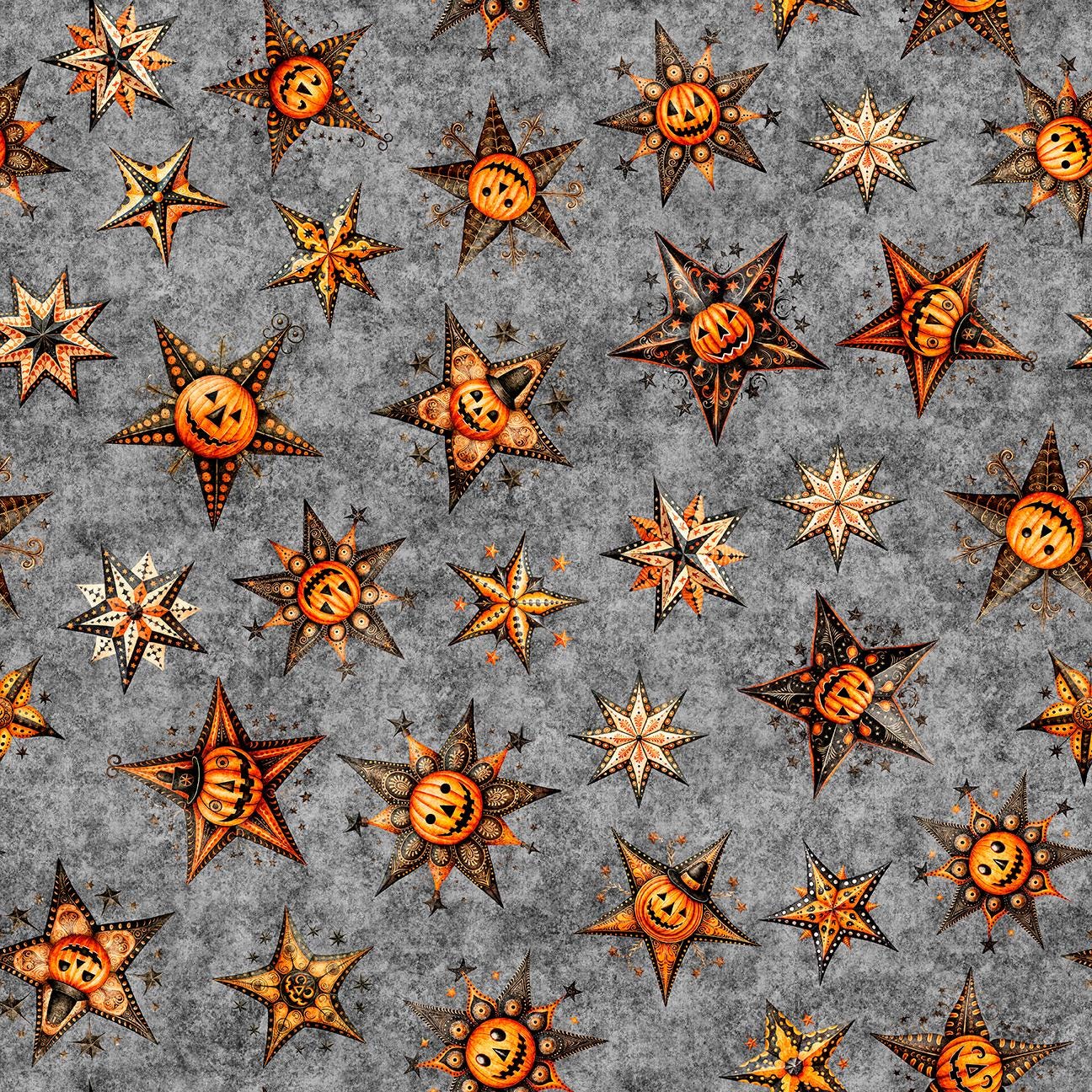 Jeepers Creepers Stars 31012 Smoke K - QT Fabrics - Stars Jack-O'-Lantern Halloween Spooky Season - Quilting Cotton Fabric