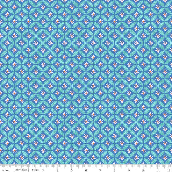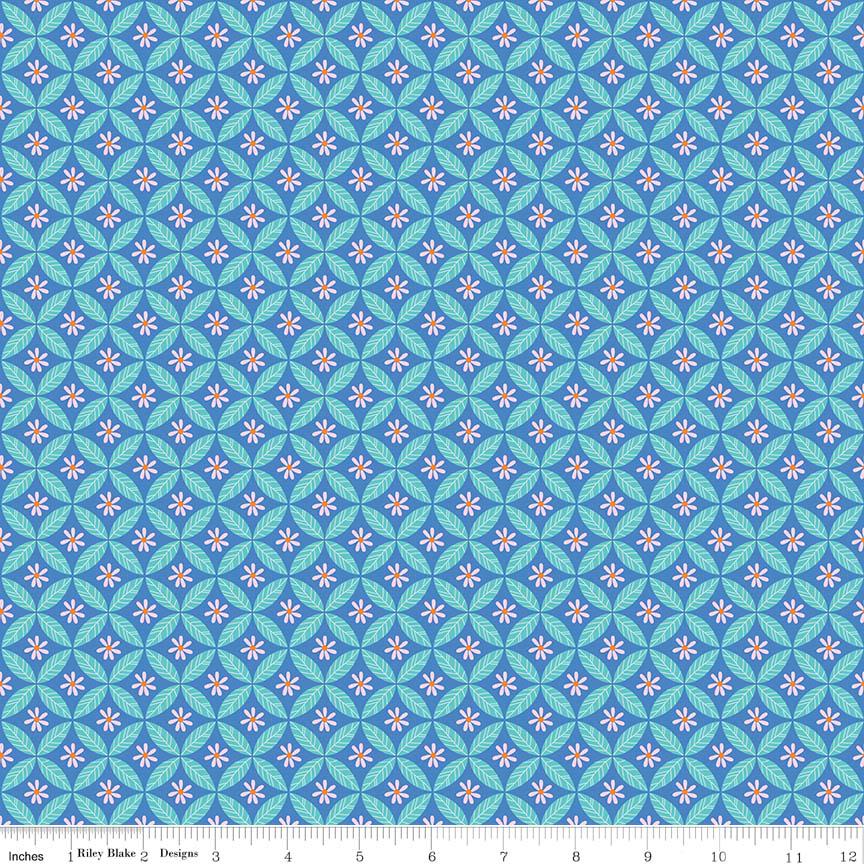 CLEARANCE KNIT Under the Canopy Circle of Leaf K9169 Blue - Riley Blake Designs - Flowers - Jersey KNIT Cotton Stretch Fabric