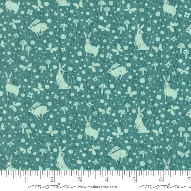 SALE Love Letter Wonder 37127 Pond - Moda Fabrics - Novelty Bunny Rabbit Mushroom Flower Butterfly - Quilting Cotton Fabric