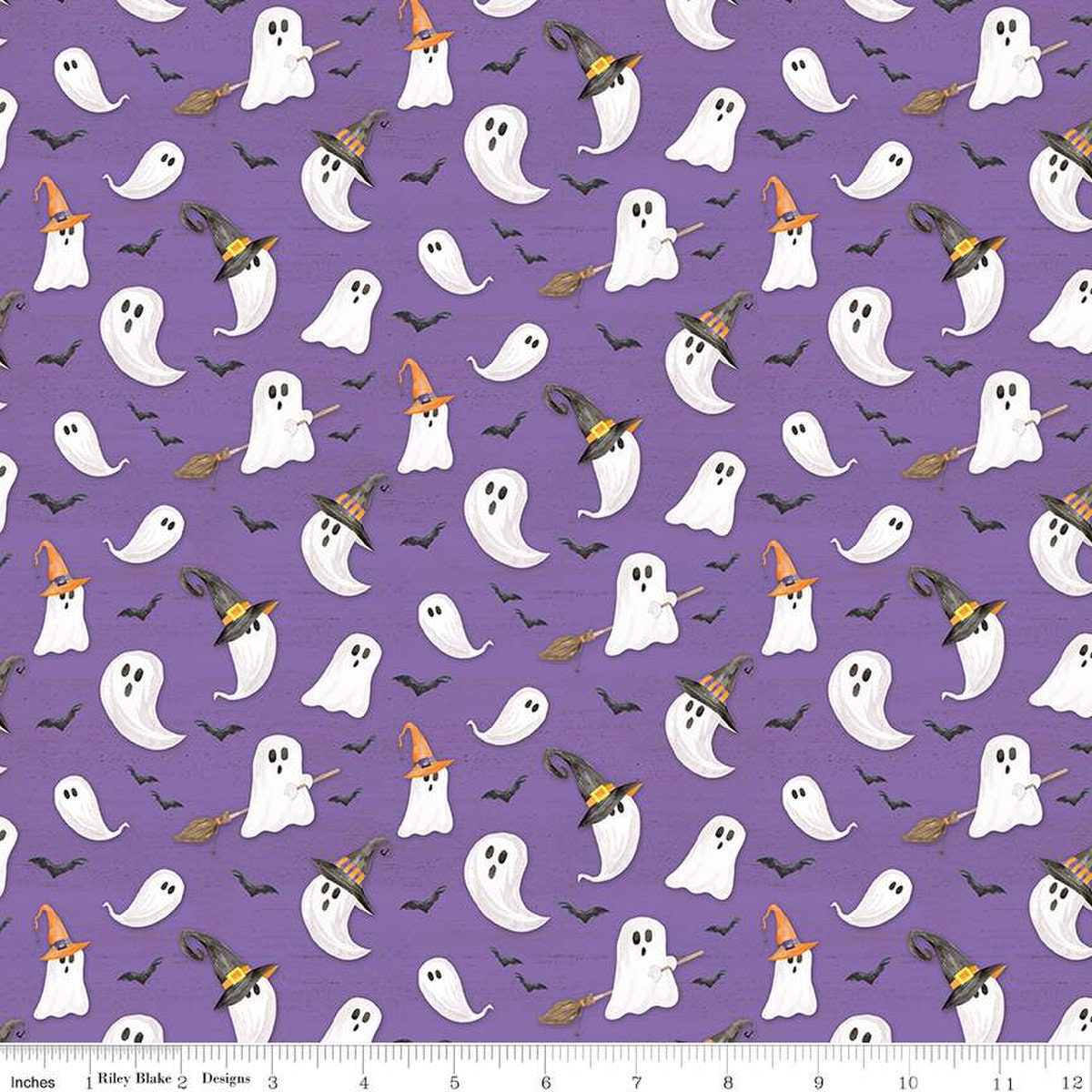 DEAL Monthly Placemats October Ghosts C12419 Purple - Riley Blake Designs - Halloween Ghosts Bats - Quilting Cotton Fabric